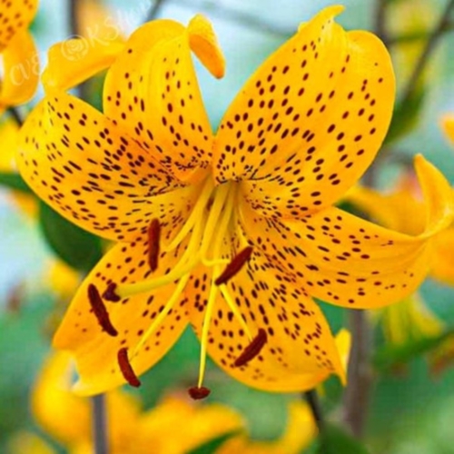 9 09864 Лилия азиатский гибрид (Lat.: Lilium asiatic hybrid) `Yellow Tiger`, h 110-120 Засухоустойчивый, сезоннодекоративный, декоративноцветущий МНОГОЛЕТНИК.