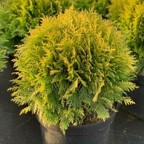 215 09747 Туя западная (Lat.: Thuja occidentalis) `Harvest Moon`, h 60, d 60 Использование: ., декоративноцветущий
